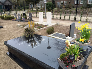 Ik weet niet of je dit uitzicht nou zo mooi vindt. Annette zei al, die mooie muur weg. Na 8 jaar begint het dan toch iets te slijten want je sterfdag is niet meer een hele dag vol verdriet. Wel is dit jaar Pasen net zo dichtbij als toen en dat maakt het wel weer wat recenter qua gevoel. Maar het is al 8 jaar. Zo ongelooflijk lang en in 8 jaar veranderd er zoveel. Niet alleen jouw begraafplek heeft een heel ander uitzicht gekregen maar ook de tuin in Uitdam. Moeilijk was dat, om allerlei dingen die jij had gemaakt of het gras wat je had gelegd met Gerardje weg te laten halen. Maar nu de nieuwe tuin er is weet ik zeker dat je het heel mooi zou hebben gevonden. En gelukkig hangen in de schuur nog je robuuste planken en heb ik buiten nog stiekem je klompen laten hangen ondanks dat Roland vindt dat ze niet meer bij de nieuwe tuin passen. Sammie, onze hond waar je zo gek op was, is helaas ook overleden, bijna 16 jaar oud. Denk niet dat ie bij jou en ome Frans in de hemel zit, er zal wel een ander plekje voor hem zijn. Ook je kleinkinderen veranderen enorm. Van kleine schatjes naar pubers met grote monden. Vandaag is Free bij ons aan het logeren, dat maakt de dag vandaag wel weer even heel speciaal. We gaan straks aan tafel even allemaal aan je denken en je veel liefde sturen. We missen je nog steeds. Enorm.